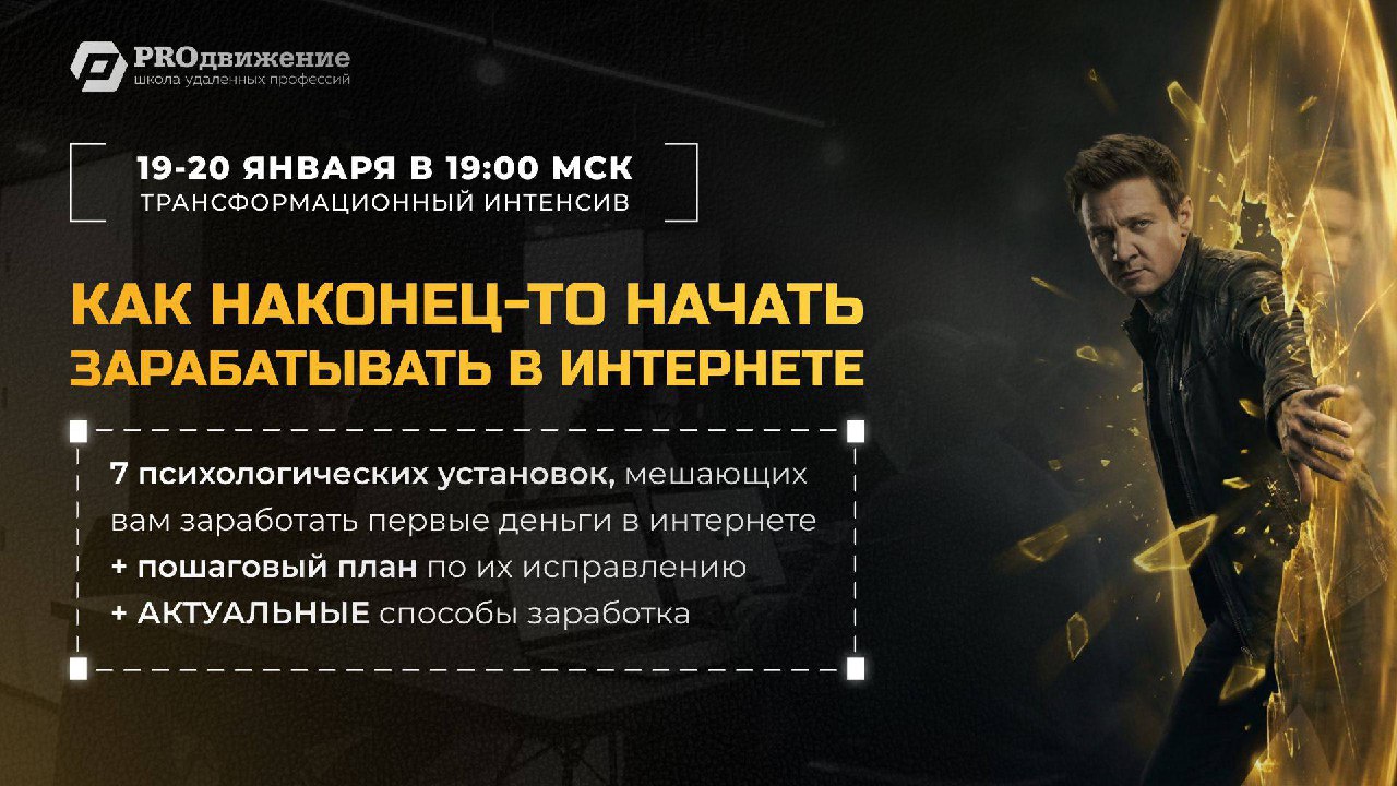 Именно поэтому в январе мы запускаем абсолютно новый трансформационный интенсив «Как наконец-то начать зарабатывать в интернете», который пройдёт 19 и 20 января в 19:00 по МСК. Это ваш шанс вырваться из замкнутого круга и начать действовать!