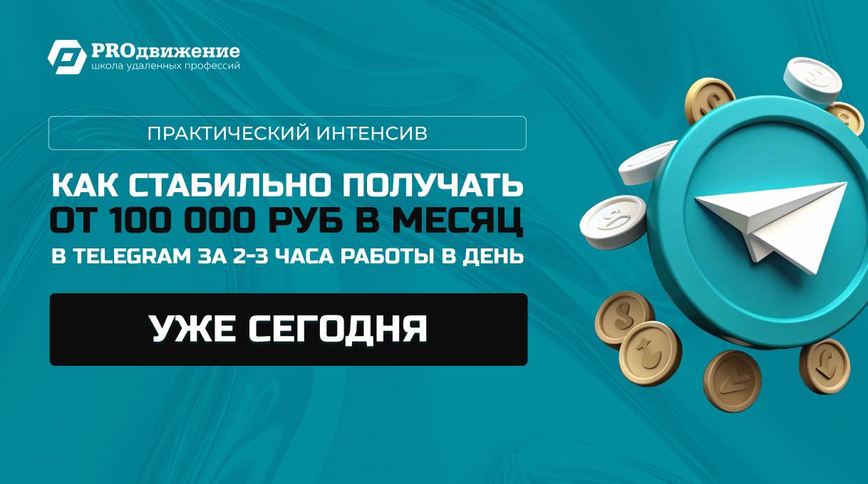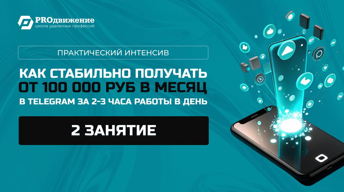 🚀 Уже сегодня, в 19:00 мск, стартует 2️⃣ занятие интенсива, посвященного теме: «Как стабильно получать от 100 000 Р в месяц в Telegram, тратя всего 2-3 часа в день»!