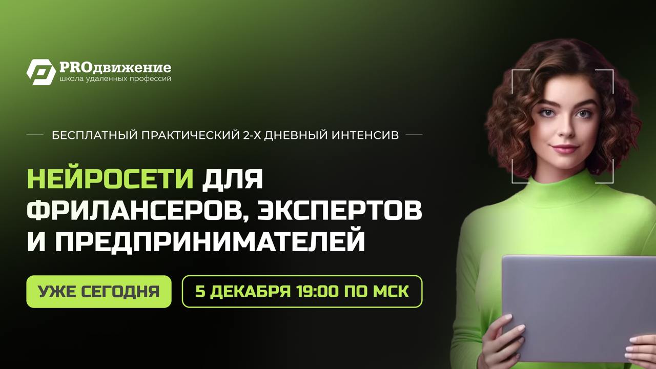 🔥 Готовы к рывку в карьере и бизнесе? Уже СЕГОДНЯ, в 19:00 мск, стартует двухдневный практический интенсив «Нейросети для фрилансеров, экспертов и предпринимателей»! Это ваш шанс освоить мощный инструмент, который позволит вам зарабатывать больше, тратя меньше времени и усилий. Не упустите эту уникальную возможность!