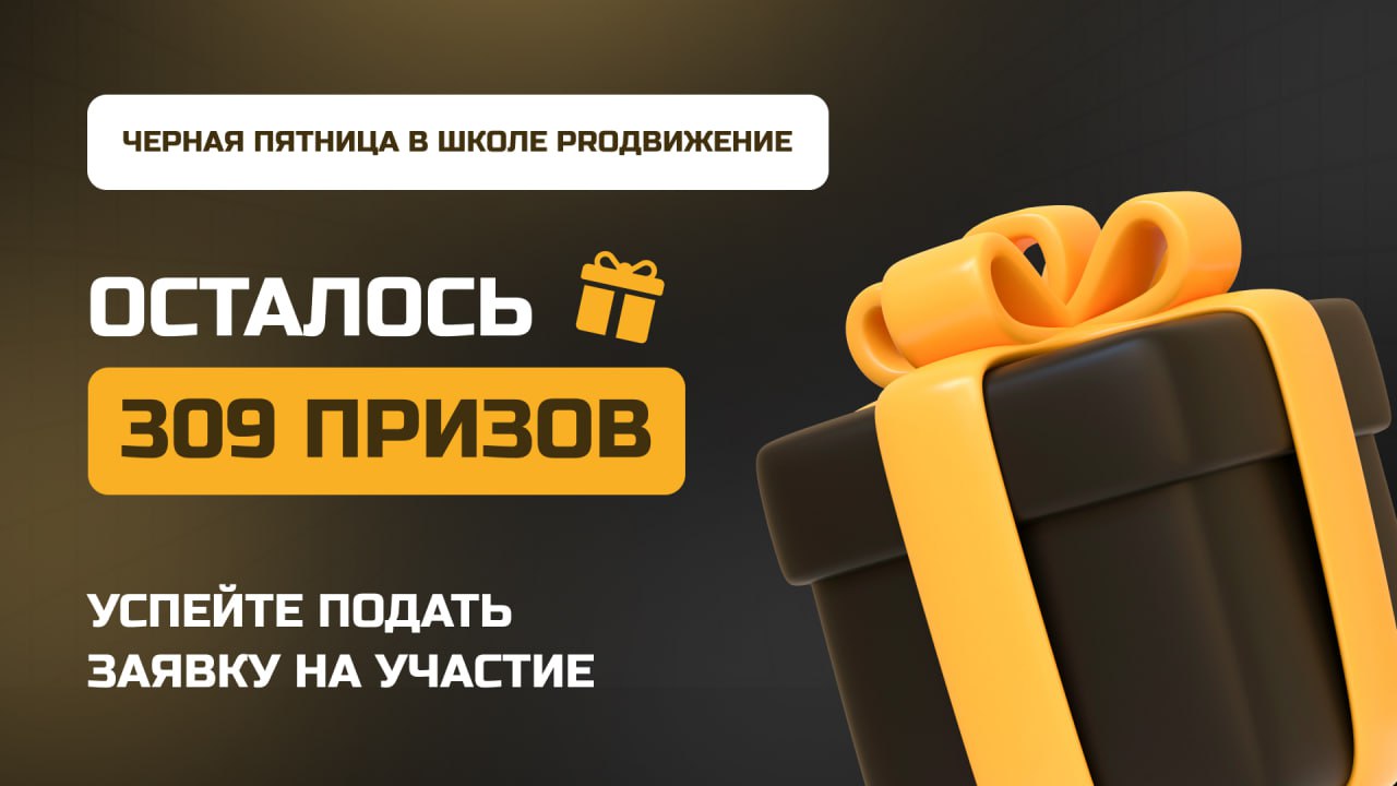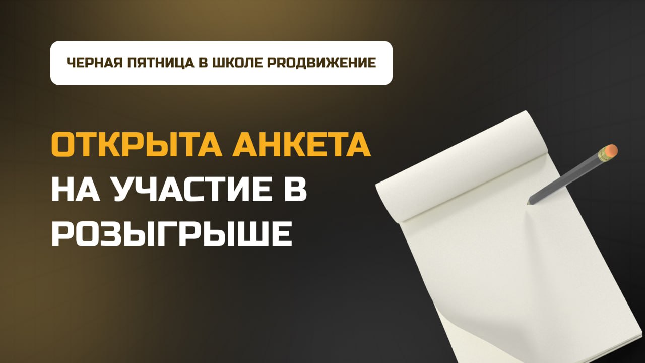 Друзья, отличные новости! Школа PROдвижение объявляет о старте Большой Черной Пятницы и открывает анкеты на участие в масштабном розыгрыше призов! У вас есть уникальный шанс выиграть ценные подарки и получить доступ к знаниям, которые изменят вашу жизнь. Не упустите возможность – заполняйте анкету прямо сейчас!