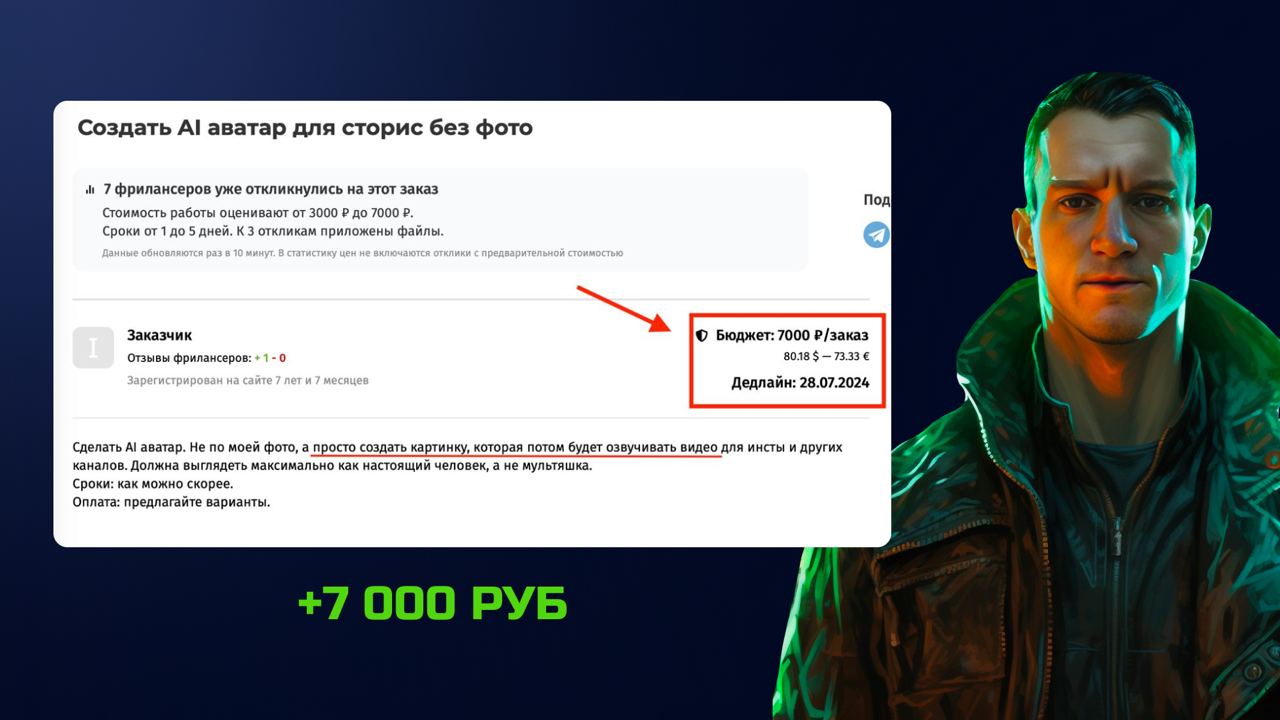 Мы построим ваш план выхода на 1-10 тыс. руб. в день, работая с нейросетями, и выстроим стратегии развития в нейросетях, если вы работаете в найме, мама в декрете, на пенсии или действующий фрилансер 🚀 Мы разберем конкретные кейсы, покажем, как другие люди уже зарабатывают, и поделимся секретами успешного применения нейросетей в различных сферах. Вы узнаете, как находить клиентов, предлагать свои услуги и получать достойный доход.
