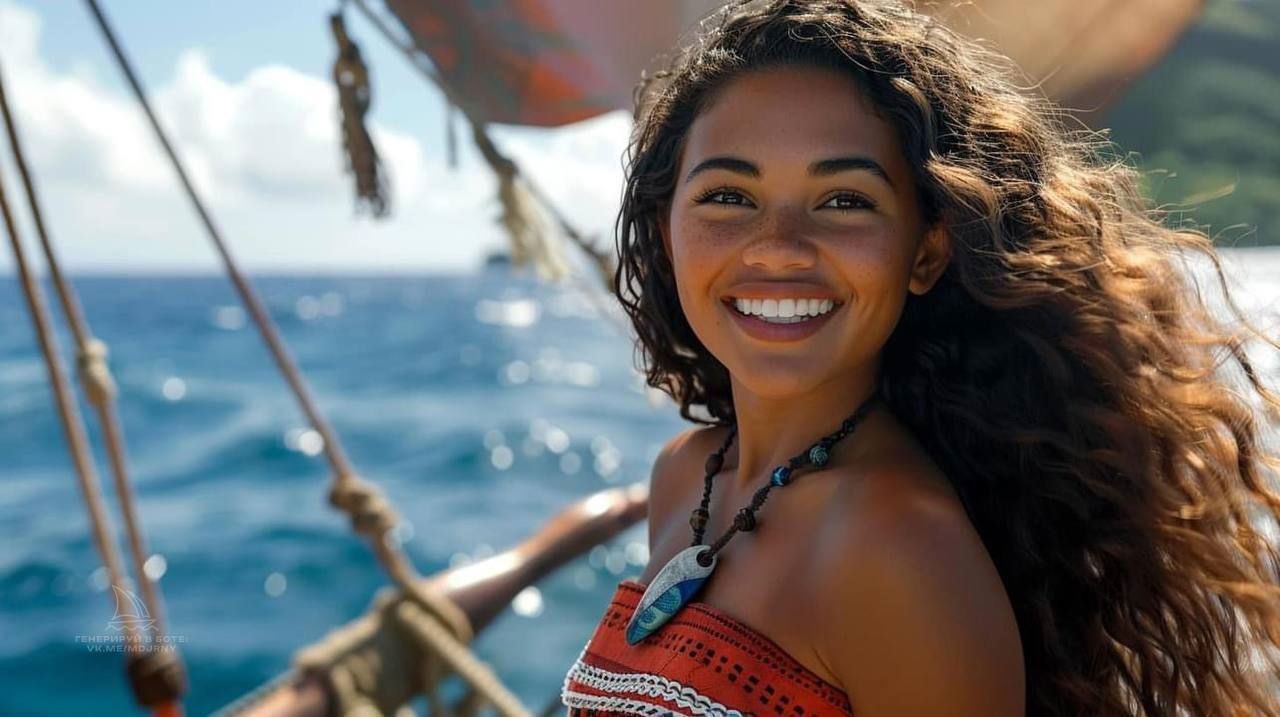 Начинаем захватывающее расследование! Перед вами девушка, удивительно напоминающая отважную Моану из знаменитого мультфильма. Но возникает вопрос: перед нами плод работы искусственного интеллекта или просто искусная пародия, созданная человеком?