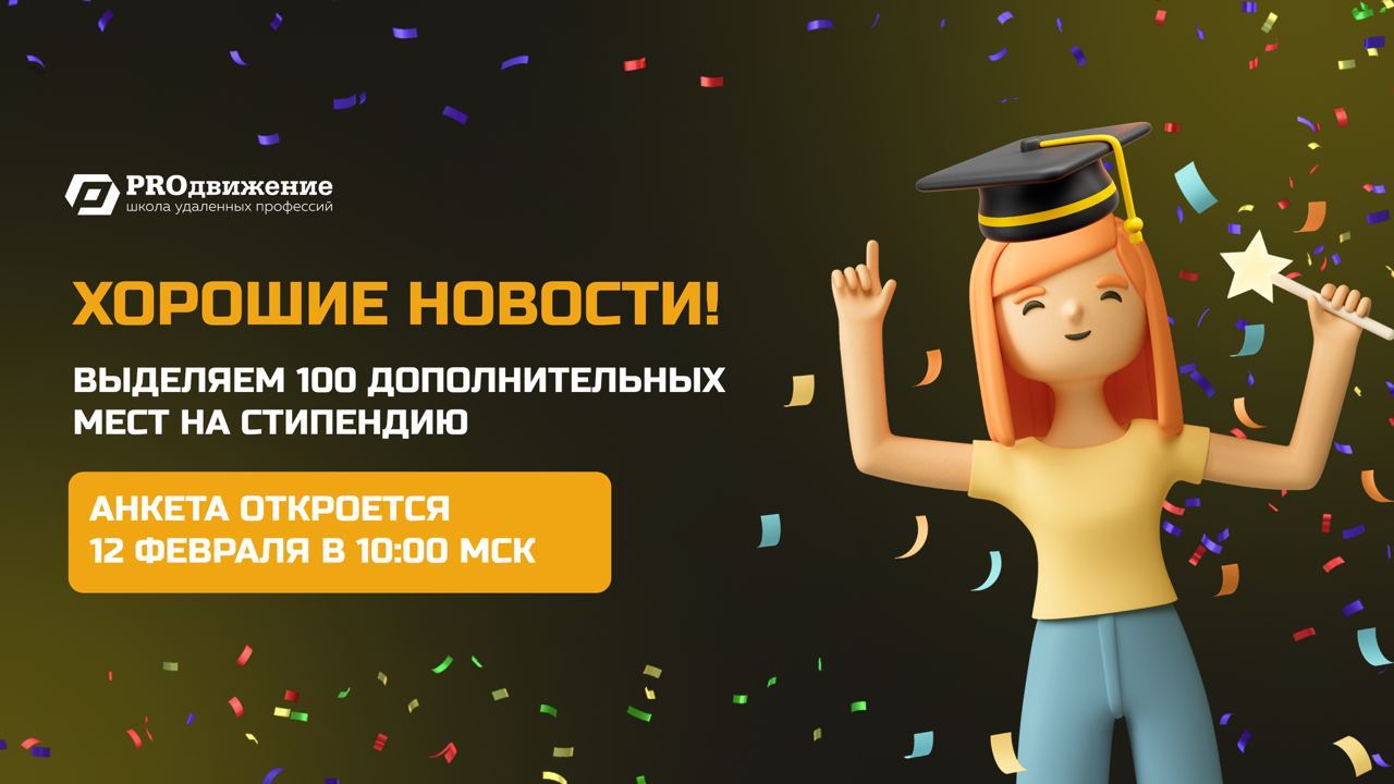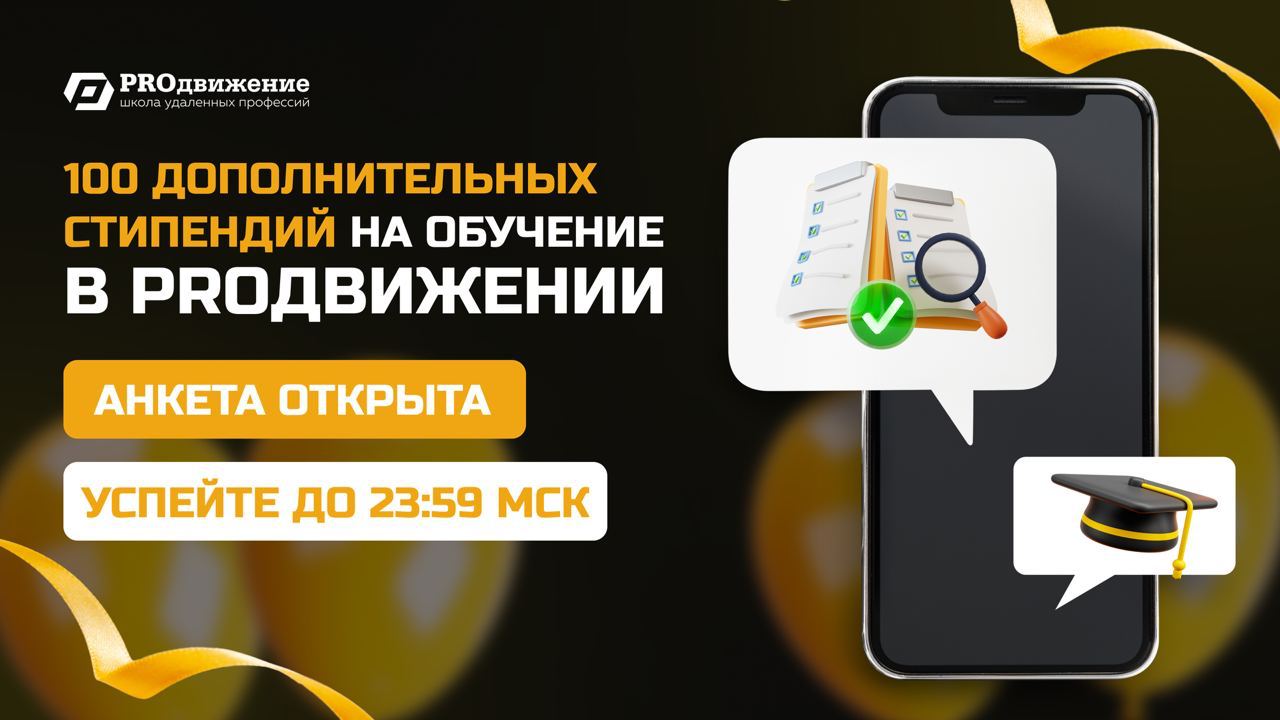🎉 Внимание! Анкета открыта до 23:59 по московскому времени! Это ваш последний шанс получить стипендию и начать обучение на самых востребованных курсах в школе «PROдвижение». Не упустите эту уникальную возможность!